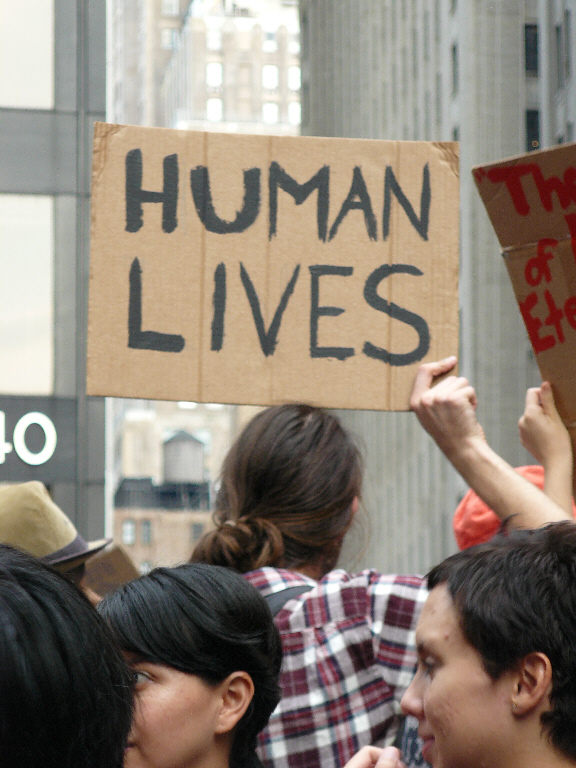 Lamar: I found this sign, and I thought it was very appropriate. It’s a good message. Some people need to be hugged; do you know what I mean? RC: It is a good message, yes. Empathy. Lamar: Right. It’s also all about solidarity: human solidarity. I feel this sign embodies that. So, I just went ahead with it. RC: What’s the main reason you’re here today, besides hugging people? Lamar: I think most of us are here because of the economic situation in the country and in the world. As you know, basically, a lot of people on Wall Street, we bailed them out. And they’re not being held accountable for all the money that they got. RC: We bailed them out, and now we’re being told we have to “cut back,” even though this country is awash with money. The top one percent has more money than ever, right? Lamar: Exactly. That is my main reason. I think the whole money system is horrible. The way money is created is horrible. And the whole system is made so that there are always poor people. And I suppose that’s OK, as long as the people have what they need. But that is not the case. And when that happens, then this happens. RC: How old are you? Lamar: I’m twenty-eight years old. RC: Where are you from? Lamar: I’m from Panama. RC: And where do you live now? Lamar: I live in Brooklyn, in Bed-Stuy. RC: That’s why they say that all roads lead to Brooklyn! How old were you when you arrived from Panama? Lamar: [Laughs] I was seventeen, a couple of days before turning eighteen. RC: Many of the establishment leftwing groups in New York are criticizing this protest. They’re saying you should pick one thing to focus on. But I think it’s brilliant that there isn’t one thing. Because now you have an automatic coalition, which is of interest to everyone. This is the ninety-nine percent that is getting screwed over in the country. Do you agree? Lamar: I do agree with that. For example, the first time I came, on the day of the Troy Davis march, it was a little confusing, because there was a Troy Davis March and then there was also the Ninety-nine Percent March. And then, the two things joined. And it got limited coverage; not a lot of people knew about it. But I think it was beautiful, how people were helping each other’s issues. And this is also part of what’s going on here. A lot of it is about solidarity. I understand where they’re coming from. It’s not like I don’t see their point; I think it’s a legitimate criticism that they’re making. Because for it to have a faster effect, it probably needs to be focused, and that’s true. However, there’s a lot of beauty in the fact that it’s including many issues that are somehow interrelated. They are the issues of the ninety-nine percent, and I suppose that’s the main thing. That is the common denominator. RC: If you had to pick one issue, it really is the ninety-nine percent: that we’re all part of the ninety-nine percent. Lamar: Right. And the issue is that there is a ninety-nine percent, as opposed to a one-hundred percent, you know? RC: Great point. That’s the main thing. So, if you’re part of the ninety-nine percent, whether you’re the part that cares about Troy Davis, or the part that cares about paying too many taxes – or whatever it is – it’s not important. If you’re part of the ninety-nine percent, that’s the issue, right? Lamar: Yes. RC: Have you slept in the park? Lamar: No. I’m going to do that tomorrow, because tomorrow there’s a march at 3:00, and I’m going to want to stay. RC: How many days have you been here? Lamar: This is my second time. RC: When was the first? Was it before the pepper-spray incident? Lamar: Before, because the pepper-spray incident was on Saturday. RC: Do you think the NYPD presence, attitude, or anything involved with that has changed since that incident? Have they pulled back a bit? Lamar: Absolutely. When I came that day, there was almost a cop per person. It was like: Do they really have nothing better to do than to stand here? I remember thinking: There must be so much crime. This is the prefect moment to commit a crime; all the cops are here! Literally, we were surrounded by cops.